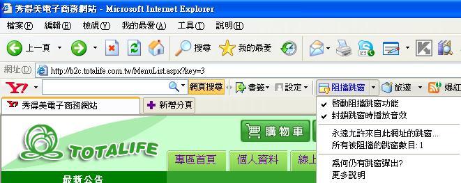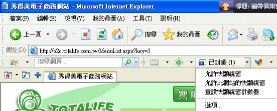 永遠允許來自b2c.totalife.com.tw的彈出式視窗